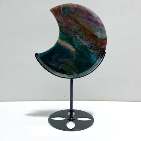 Unique Large Ocean Jasper Moon Carving With Stand